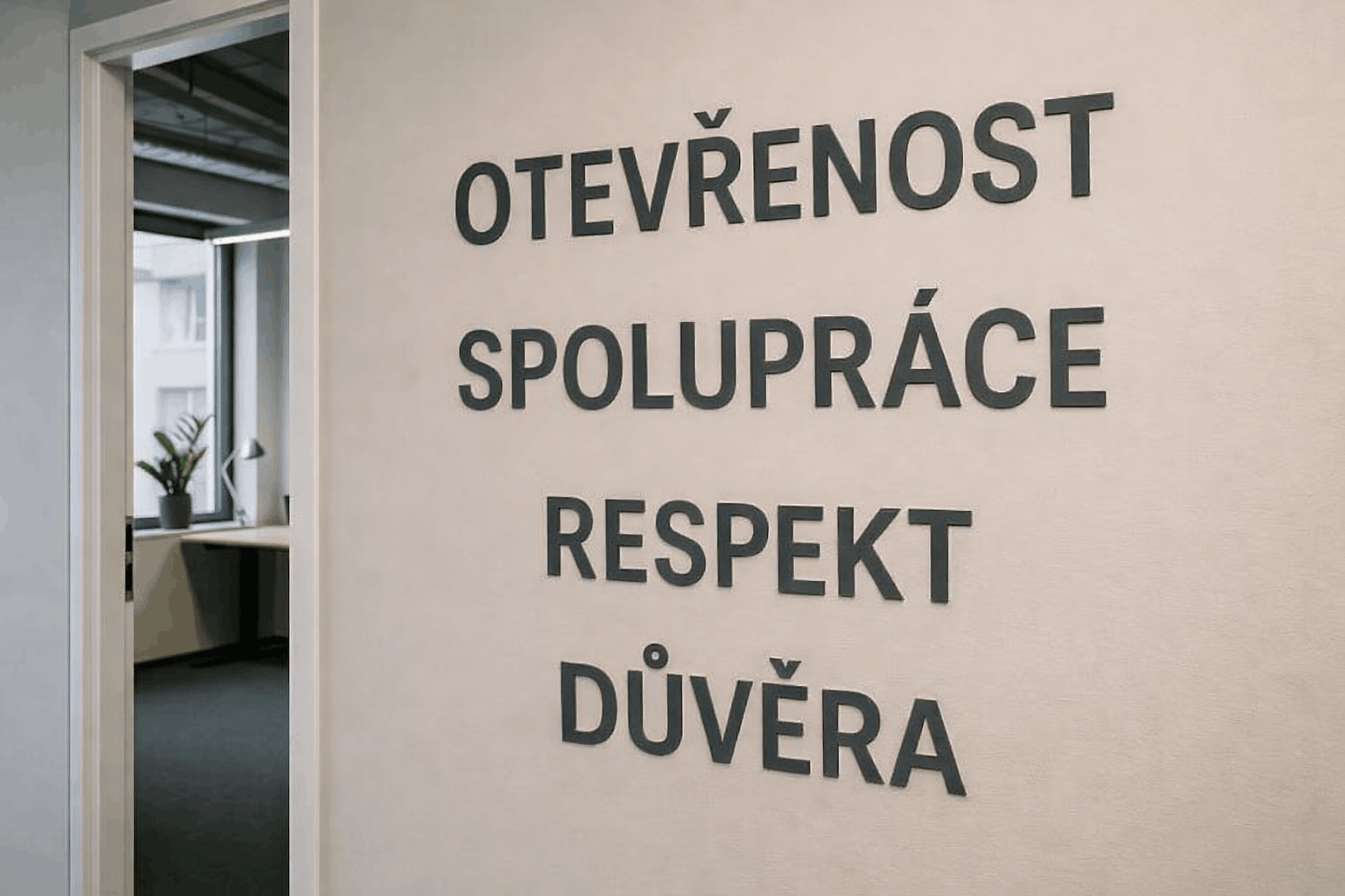 Příklad: Ve firmě do 15 lidí si každý připravil tři věci, bez kterých by se mu nepracovalo dobře. Z toho vznikly čtyři hodnoty, které dnes visí v zasedačce – a všichni vědí, co znamenají.